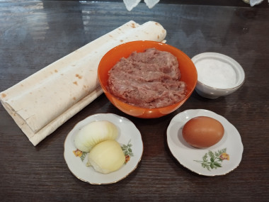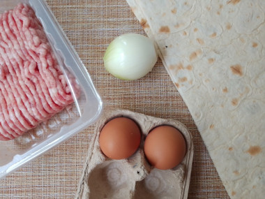 Как сделать рулет из лаваша с фаршем в духовке? Подготовьте необходимые продукты. Фарш можно использовать любой (свиной, говяжий, куриный). У меня смешанный (свинина и говядина).