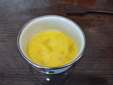 Второе яйцо взбейте в маленькой мисочке вилкой до однородности.