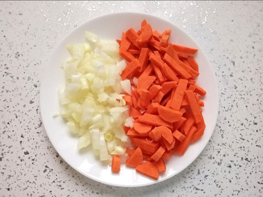 Имейте в виду, что от того, как Вы измельчите морковь, зависит и конечный результат в этом блюде: натертая морковь в процессе термической обработки превратится в кашицу и равномерно смешается с остальными ингредиентами, нарезанная соломкой или брусочками сохранит свою форму.
