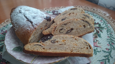 Замечательный творожный кекс. В отличии от классического штоллена, творожный не жирный, влажно-плотный с пряными сухофруктами (замачиваю на ночь в коньяке). Обязательное условие: для раскрытия полного вкуса необходима выдержка на холоде. Пеку заранее несколько штолленов, за 2 месяца до Рождества и храню в морозилке, за неделю до Рождества переношу в холодильник, в Сочельник ставлю на стол на традиционно украшенное травами и злаками место.