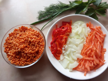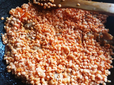 Приготовить такое блюдо можно и из зелёной чечевицы, только учтите, что она готовится намного дольше, чем красная.