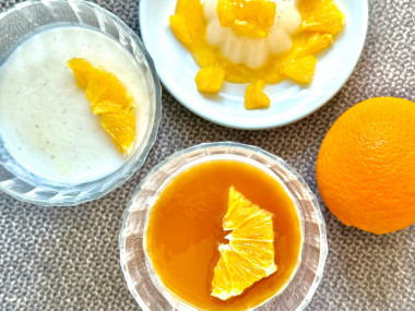 За 2 часа все хорошо застыло. Одну Пана коту полила соусом, как в рецепте. Другую полила карамельным топингом, третью сгущенкой. Вышло вкусно и нежно. Спасибо за простой и необычный рецепт. С красными апельсинами выглядит безумно красиво, но с обычными получилось тоже неплохо.