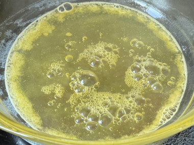 Поставьте сотейник на средний огонь и, помешивая, доведите смесь до кипения, но не кипятите. Желатин должен полностью раствориться. Уберите сотейник с огня.