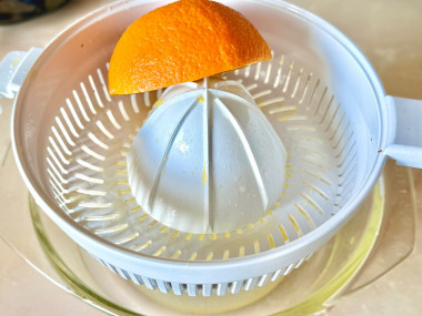 Один апельсин очистите от кожуры и разделите на сегменты. Каждый сегмент очистите от пленок. У меня на видео показано, как сделать это быстро.