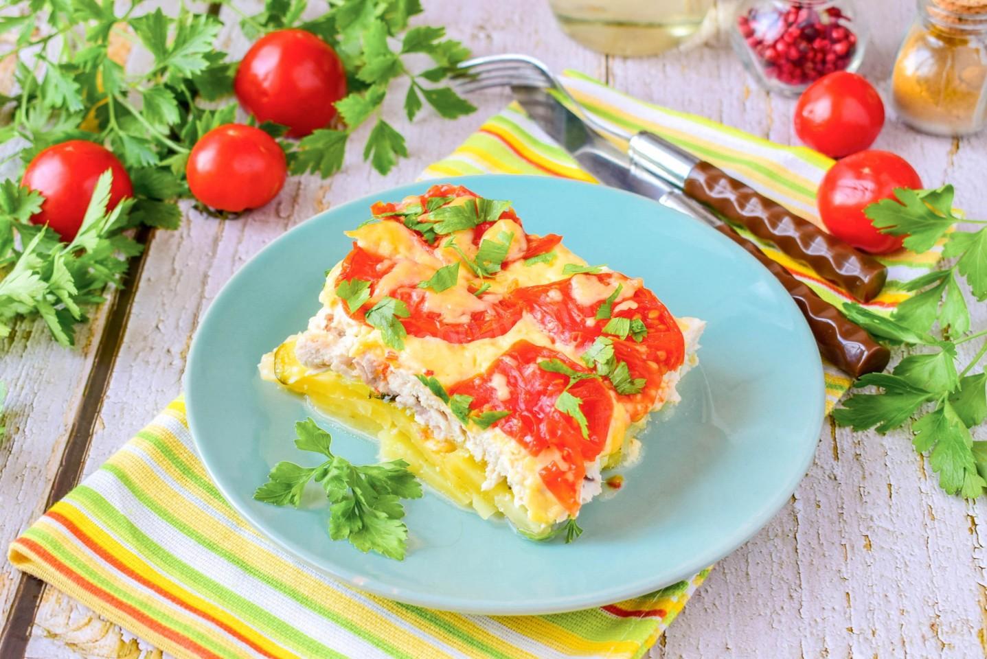 Курицу выбирайте свежую, с упругой текстурой и приятным запахом. Картофель берите рассыпчатых сортов — он лучше пропекается. Кабачки — молодые, с тонкой кожицей. Сыр — тот, что хорошо плавится.