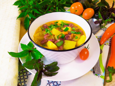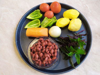 Как сварить суп с консервированной фасолью и картошкой? Подготовьте все необходимые продукты. Для супа можно использовать сухую фасоль. В этом случае её нужно предварительно замочить, а далее отварить до готовности.