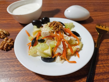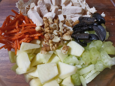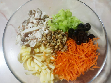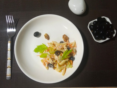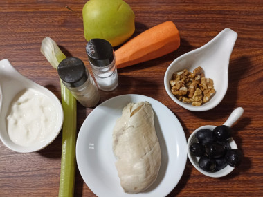 Салат с курицей, сельдереем и яблоком- это настолько вкусно! Гармоничное сочетание ингредиентов, лёгкий, полезный. Просто находка для завтрака или ужина. Для себя я вообще не стала его ни солить, ни перчить,просто добавила больше маслин и наслаждалась натуральным вкусом. Рецепт - в золотую копилочку. Спасибо, katushafin!