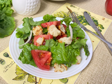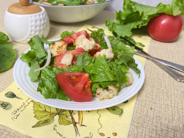 Салат получился очень легким, сочным и ароматным, гренки напитались заправкой, но остались хрустящим, это было очень вкусно. И мой младший, любитель майонезных салатов, лопал с удовольствием и теперь просит готовить по-чаще.