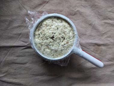 Слегка утрамбуйте сыр, заверните сверху концы ткани. Установите на сыр груз, например, банку с водой. Дождитесь, пока масса остынет и уберите ее в холодильник минимум на 8 часов.