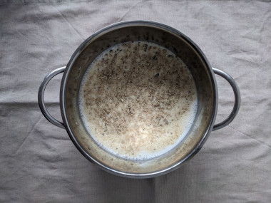 2) Кастрюля, в которой будете нагревать ингредиенты, должна быть с толстым дном. По возможности, молоко нужно помешивать, не допуская пригорания. Я использовала силиконовую лопатку для этого.