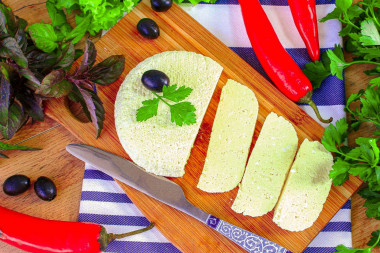 По вкусу очень напомнил Адыгейский из магазина, мягкий и сливочный, слегка солёный и нежирный.