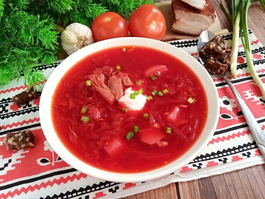 Борщ получился вкусный, наваристый, с насыщенным вкусом. Подавала его со сметаной. Дочка съела за раз две порции, что, конечно же, очень приятно.
