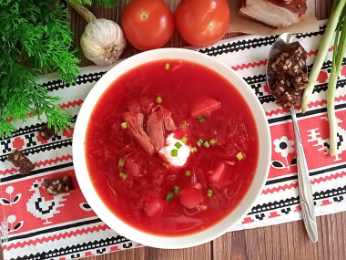 На обед сварила борщ с помидорами по этому рецепту. Получилось просто потрясающе вкусно! Борщ наваристый, яркий, ароматный!