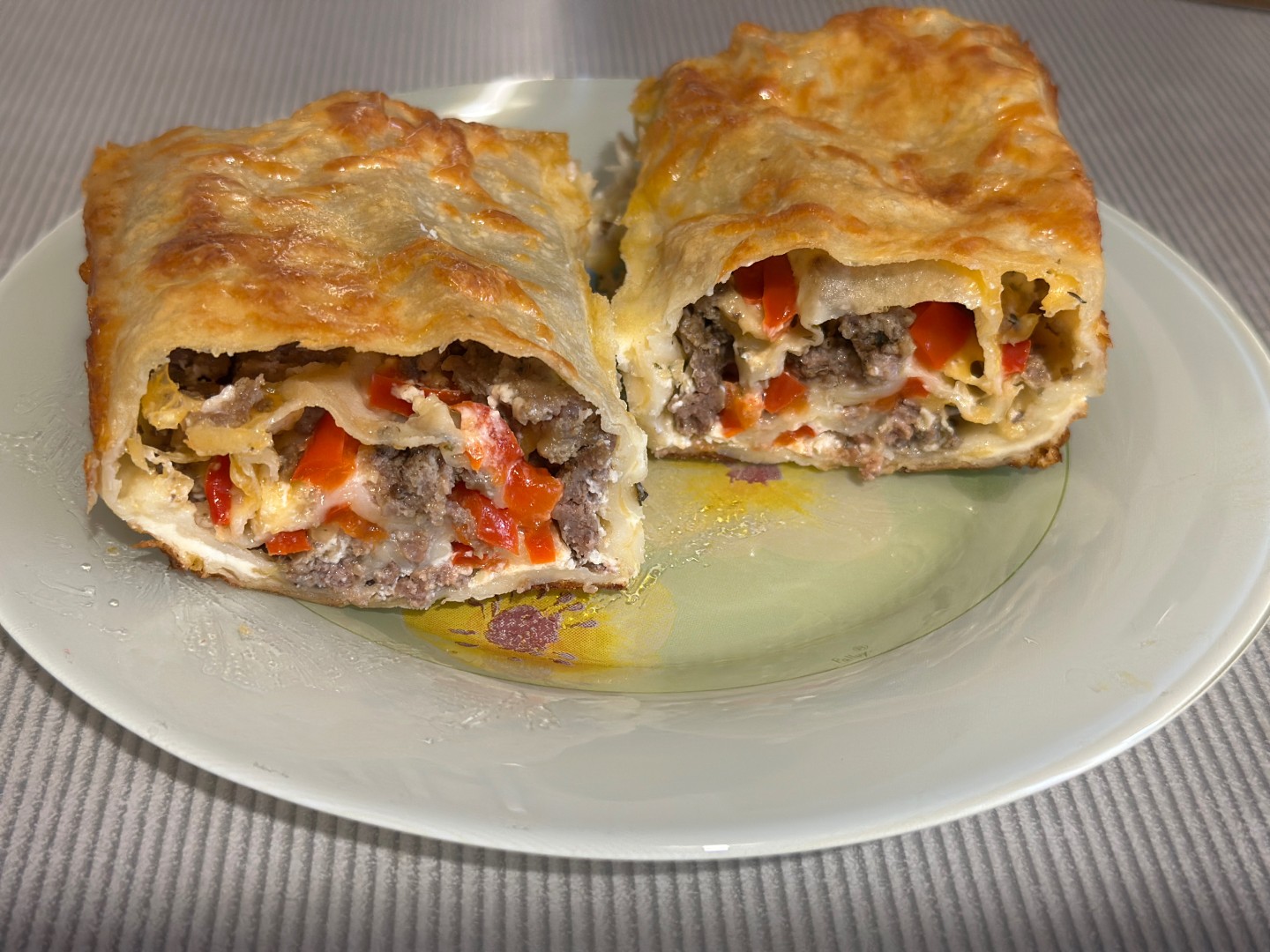 Замечательный рецепт! Использование лаваша- рациональное использование своего времени 🔥 Я не так давно полюбила готовить и теперь для меня приготовление пищи не проблема, но в очень загруженный вечер такой рецепт просто незаменим, чтобы и сытно накормить и удивить. Фарш у меня был свинина+говядина 50/50, быстро его обжарила, лаваша только 100гр, его промазала майонезом, выложила фарш, добавила вместо помидор нарезанный соломкой болгарский красный перец и посыпала сыром. Свернула рулет, разделила на 3 части и сложила в одноразовую форму для выпекания. Выложила заливку, рулетики слегка подвигала, чтобы заливка равномерно распределялась со всех сторон. Поставила в газовую духовку без конвектора на 20 минут. И все 🔥 никаких особых трудозатрат не понадобилось, а получилось очень вкусно и красиво 😍 спасибо автору за такое интересное решение приготовления пирога❤️