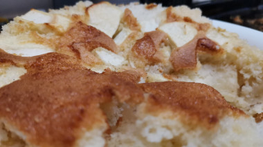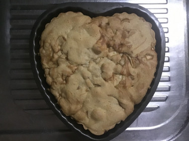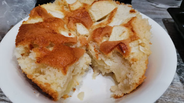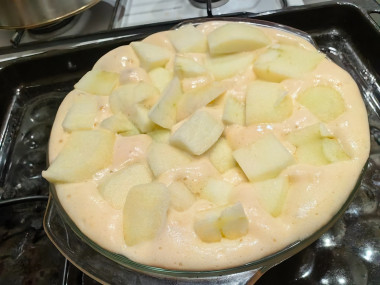 Здравствуйте! Замечательный и главное простой в приготовлении рецепт, спасибо! Очень нежная консистенция теста, воздушная, благодаря сильно взбитым яйцам и осторожного введения к ним муки и разрыхлителя. Яблоки использовала домашние, свои, но из-за сильной сладости в них уменьшила количество сахара в рецепте. В будущем только ещё уменьшу количество яиц и остального, либо куплю форму побольше.. Ибо на 4 яйца теста получилось немного больше и, как видно на фотографиях, оно слегка вытекло за края 😅