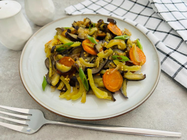 Гарнира вкусней и полезней не сыскать, обязательно пробуйте! Жареные баклажаны с перцем болгарским и чесноком отлично дополнят мясные блюда и послужат прекрасным гарниром. Блюдо получается ярким и весьма аппетитно выглядит благодаря тому, что овощи не тушатся под крышкой, а именно обжариваются. Перец лучше выбрать разных цветов, а лук использовать фиолетовый, чтобы придать блюду красивый яркий вид.