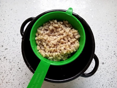 Перловку предварительно замочила на ночь, затем отварила и промыла кипяченой водой. Раньше, когда варила перловку вместе с мясом, бульон получался синеватым и мутным. Поэтому отдельное отваривание гораздо лучше!