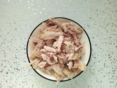 Курицу залейте водой и поставьте на огонь. Доведите до кипения, снимая пенку и варите минут 15-20. Затем мясо нарежьте на кусочки и верните в бульон.
