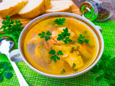 Несколько раз готовила рассольник с курицей и перловкой и солеными огурцами, но крупу варила вместе с мясом, и действительно бульон всегда был мутным. На этот раз супчик получился светленьким, кушать его было одно удовольствие 😉