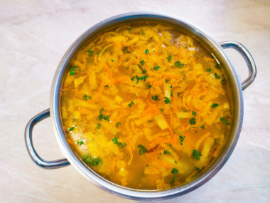 В конце готовки можно добавить измельченной свежей зелени. Готовый суп снимите с огня и дайте ему немного постоять по крышкой. Будет достаточно минут 10-15. Затем разлейте суп по тарелкам и подавайте к столу в горячем виде. Приятного аппетита!