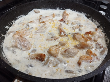 Вы молодец, что так тщательно подошли к процессу: обжарили куриное филе, добавили ароматный чеснок, грибы и сливочный соус с сыром — это идеальное сочетание, которое делает блюдо насыщенным и аппетитным. 👏 😋 Если вдруг захотите ещё немного поэкспериментировать, попробуйте добавить в блюдо немного зелени или горчицы — это придаст ему новые оттенки вкуса.