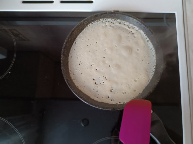 Готовое блинное тесто получается достаточно жидкое. Можете немного отредактировать консистенцию теста мукой или молоком. Но для приготовления блинов дырочками тесто и должно быть жидкое.