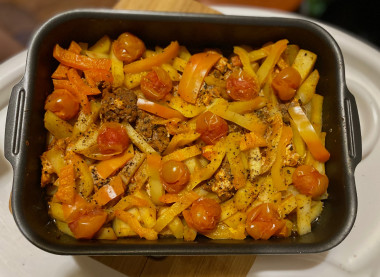Бывало , что картошка не пропекалась. Но благодаря этому рецепту , картошка пропиталась соком овощей и просто таяла во рту. Перец добавил своей пикантности и вкус заиграл новыми красками.