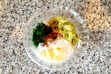 В качестве дополнения сделала соус на основе сметаны, тёртого маринованного огурчика, чеснока и укропа. В итоге получился идеальный гастрономический тандем.