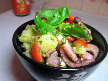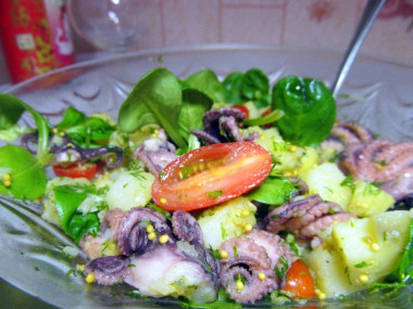 Шикарный, яркий, оригинальный, на итальянский лад! Салат с осьминогами и картофелем никого не оставит равнодушным. У него аппетитный внешний вид и отличный вкус, что характерно для средиземноморской кухни. Салат станет настоящим украшением любого стола.