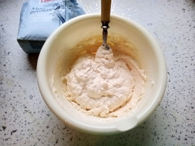 Оставьте творожную массу на 15 минут. Она должна быть густой и не растекаться. Если масса слишком влажная и не держит форму, добавьте еще немного кукурузной муки.