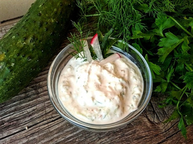 Переложите готовый соус в подходящую посуду, украсьте дольками огурца и зеленью. Подавайте к столу к мясу, курице, котлетам, отварному картофелю. Или используйте соус при приготовлении греческой шаурмы. Приятного аппетита!