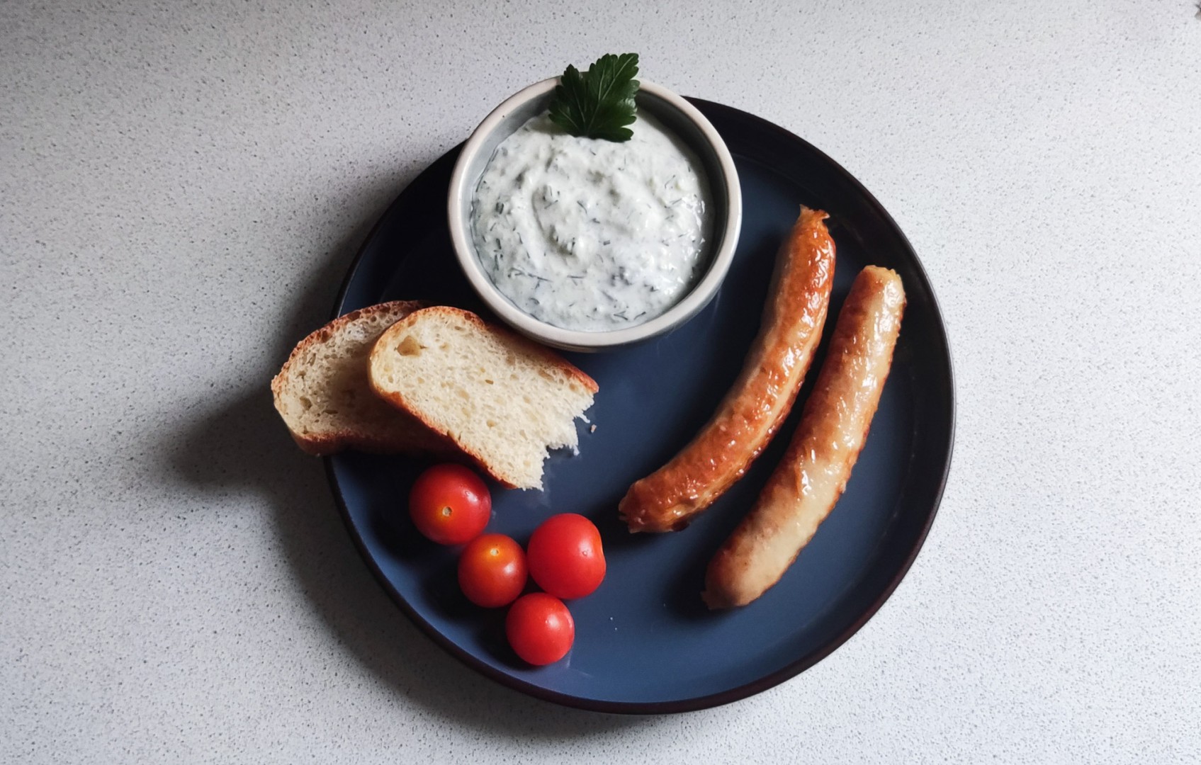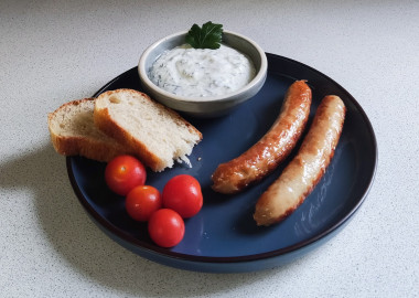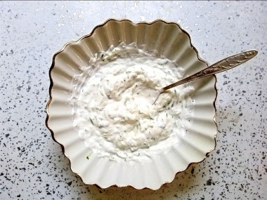 Искала рецепт соуса к колбаскам, выбор остановился на соусе с огурцом пп.