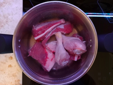 Как сварить вкусную солянку сборную мясную с картошкой? Нужно просто следовать рецепту. Для начала подготовьте необходимые ингредиенты по списку. Говядину или свинину лучше взять на косточке - бульон получится более насыщенный и наваристый. У меня свинина на косточке, а говядина и курица в виде мякоти. Части курицы можете брать по своему вкусу. У меня филе.