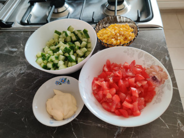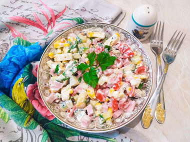 Салат кукуруза колбаса огурец отличный вариант на скорую руку. Особенно когда приходишь с работы и хочется чего-то вкусненького и побыстрее, или из серии "гости на пороге".