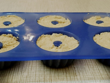 . Ложкой выложила тесто по силиконовым формочкам, предварительно смазав небольшим количеством подсолнечного масла. Очень вкусные