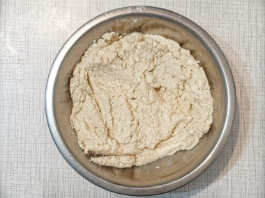 Все хорошо перемешайте до однородности. Если тесто получается слишком вязкое, добавьте еще немного овсяной или кукурузной муки.Оставьте творожное тесто на 15 минут. Оно станет менее влажным и лепить сырники будут удобнее.
