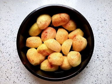 Рецепт картошка на пару в мультиварке я увидела вовремя. Как раз думала что приготовить на гарнир к грибам. Процесс прост и понятен, шаги расписаны подробно. Картошки у меня получилось чуть больше, я ее разрезала на половинки. Уложила их на поддон и решила посыпать картошку копченой паприкой для цвета и аромата. Готовила картошку на пару 40 минут. Кстати воды для пара хватило, но в следующий раз возьму чуть больше. Мне такой рецепт понравился) Пока картошка парилась я готовила грибную подливу. Картошку после приготовления полила растопленным маслом и посолила. Получилось очень вкусно! Картошка стала мягкой, распаренной. Паприка придала приятный аромат. Мне кажется можно посыпать картошечку любимыми травами и специями.