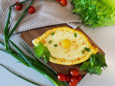 Когда бортики лодочек подрумянятся, а сыр в начинке расплавится, разбейте в центр каждой лодочки по яйцу. Запекайте хачапури еще примерно 5 минут. Поверхность яйца должна схватиться, но желток остаться жидким. По желанию можете добавить в каждую лодочку кусочек сливочного масла.