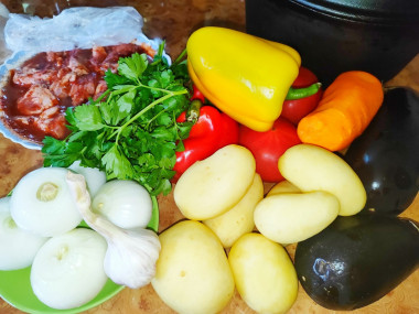 Как сделать хорциани грузинское в казане? Подготовьте все продукты, которые указаны в рецепте по списку. Свинину по желанию можно заменить на говядину, но учтите, что в этом случае время приготовления и калорийность изменятся. Если используете замороженное мясо, его нужно разморозить заранее. Как это сделать правильно читайте в статье по ссылке в конце рецепта.