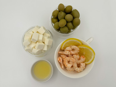 Очень понравилось сочетание зеленых оливок с креветками и сыром фета. Результатом осталась довольна, советую всем попробовать.