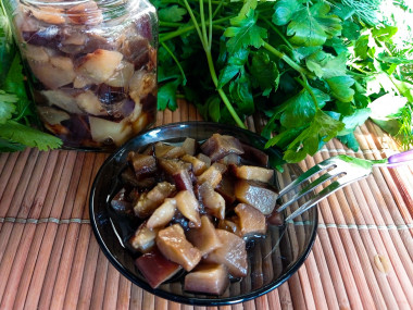 Баклажаны у меня уместились в 200-граммовой баночке. Тщательно её не стерилизовала, поскольку заготовку не планировала хранить. Утром я баклажаны сделала, а вечером мы уже снимали пробу.