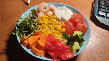 Очень понравилось блюдо, единственное что вместо тунца положил креветку и добавил несколько своих овощей. Блюдо очень яркое и простое, хотя при подаче выглядит как из ресторана, не смотря на то, что собрано оно из простетских ингредиентов))
