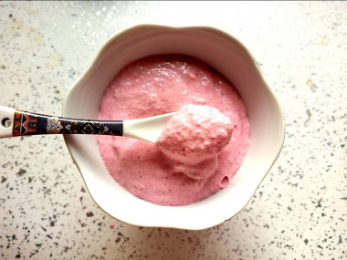 Консистенция массы должна получиться не сильно жидкая, а больше густая, чтобы ее можно было брать ложкой и ягоды с фруктами в виде украшений не тонули в нем.