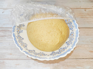 Выложите тесто в миску, накройте полотенцем и оставьте на 10-15 минут.