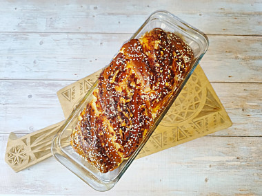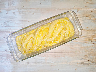 Переложите заготовку в смазанную маслом прямоугольную форму для выпекания (у меня размер формы 25x13 см). Оставьте тесто на 1-1,5 часа в тепле для подъема.