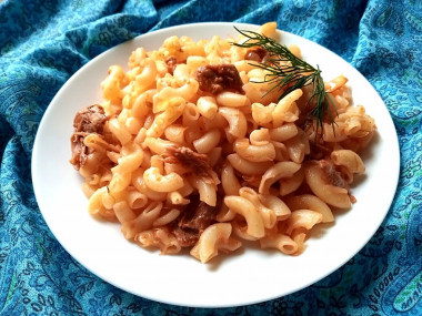 Нам бабушка готовила макарошки с тушенкой, когда мы ездили на дачу.