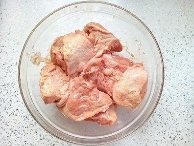 Куриное мясо тщательно промойте и обсушите. В миску выложите курицу. Всыпьте специи для мяса, паприку, и соль по вкусу. Все перемешайте. Если вы используете готовые смеси специй, обязательно прочитайте на упаковке состав. Часто в таких смесях уже присутствует соль, учитывайте это, иначе рискуете пересолить блюдо.