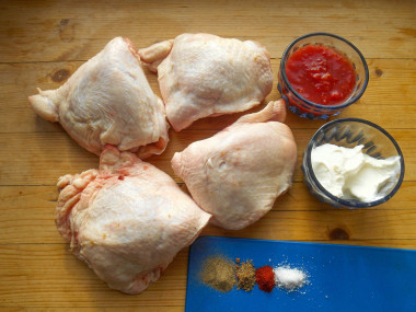 Калорийность продуктов: Куриные бедрышки, Аджика, Сметана, Специи сухие, Паприка, Соль