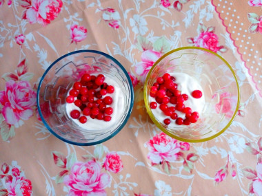 Когда я увидела рецепт ПП десерта из творога, то сразу же решила приготовить его детям на перекус. У меня как раз были творог и йогурт. Йогурт натуральный без сахара, но с небольшой прослойкой вишневого джема. Я не стала отделять прослойку и отправила йогурт к творогу вместе с ней. Для сладости положила ещё две столовые ложки мёда. Ягодные слои я сделала из брусники.