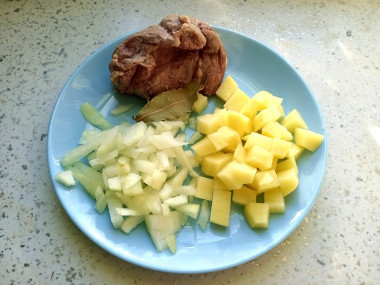 Как сварить классический суп из говядины с картошкой? Подготовьте для этого необходимые ингредиенты. Для варки супа я беру мякоть говядины. Но можно взять и мясо на кости. Картофель заранее очистите от кожуры и ополосните от загрязнений.
